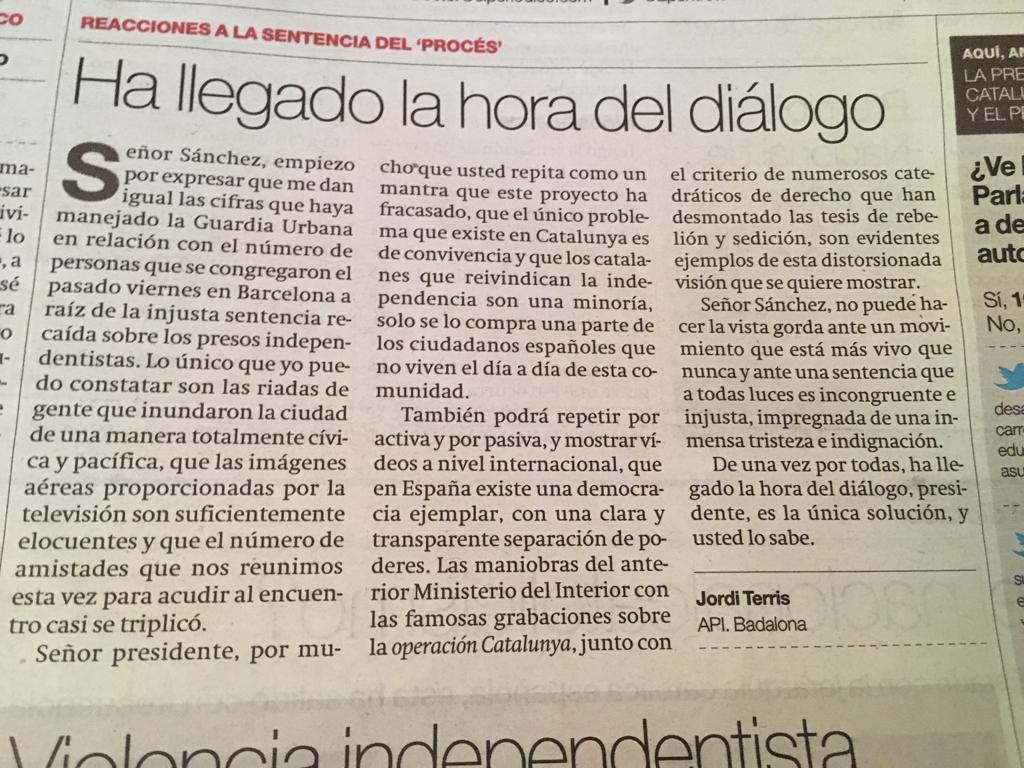 Carta d’un lector: «Soler va traspassar la línia vermella» (elperiodico.com)