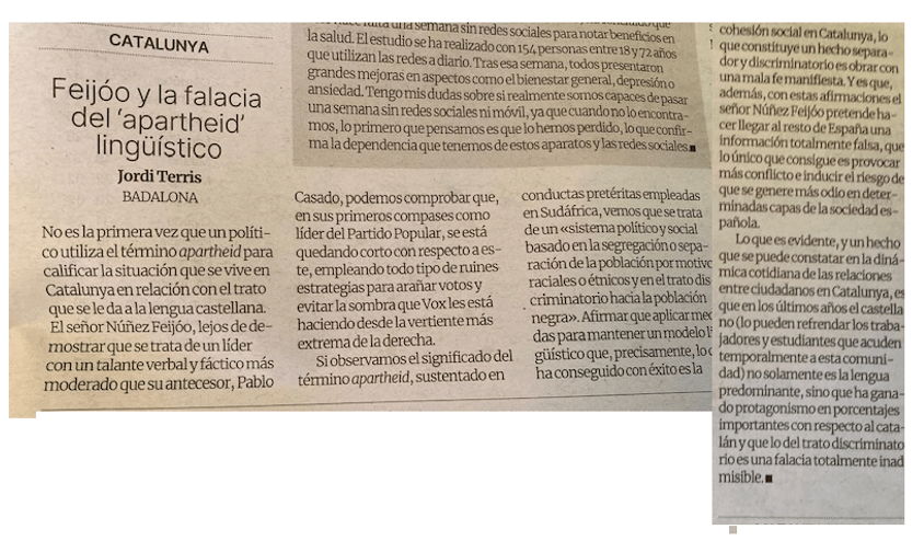 Alberto Núñez Feijóo y la falacia inadmisible del ‘apartheid’ lingüístico en Catalunya (elperiodico.com)