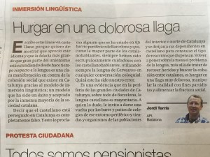 Vuelvo a escribir estas líneas en castellano porque, una vez más, quiero demostrar que aprecio este idioma y que la falacia más grande que gran parte del unionismo está profiriendo desde hace tiempo respecto a la lengua, es una clara manifestación en contra de la cohesión social que existe en Catalunya gracias al modelo de Inmersión Lingüística; un modelo que, por mucho que intenten hacer ver lo contrario, ha sido un sistema de éxito y aceptado por la inmensa mayoría de la sociedad catalana, y que los notables niveles académicos del idioma español en esta tierra son fácilmente constatables. Decir que el castellano está perseguido en Catalunya es sencillamente una falsedad como un templo, mentira que por cierto está llegando a calar en el resto de pueblos de España.