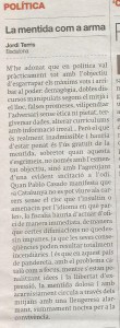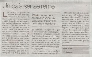 Com a prèvia, assenyalar que segueixo comprant i escrivint per al Periodico perquè, tot i que té una línea editorial definida en la que habitualment no puc estar d’acord, penso que per tenir un criteri acurat i objectiu s’han d’escoltar i llegir veus contraries a la teva ideologia i copsar el panorama polític, econòmic i social des de diferents punts de vista i amb un sentit ampli de mires.