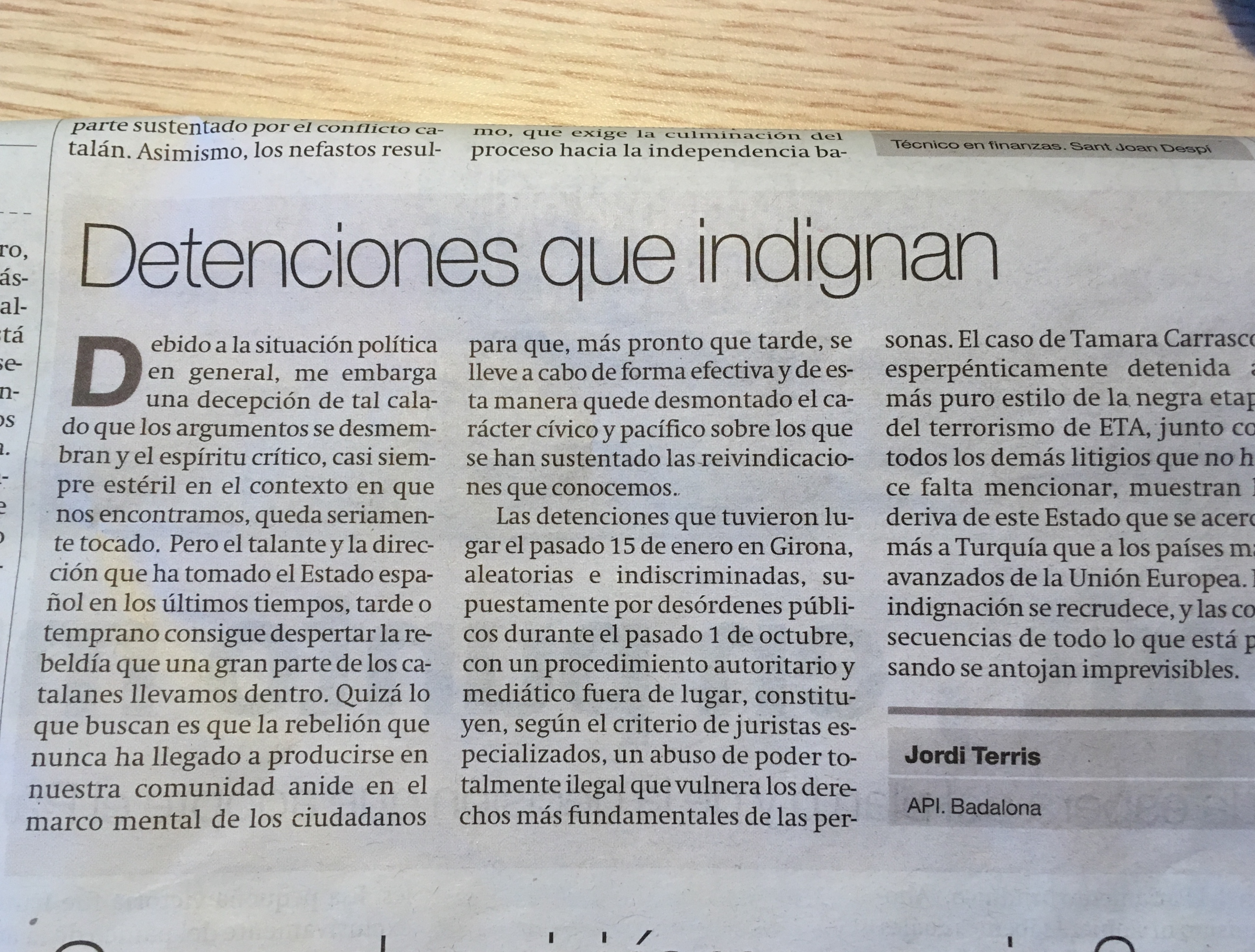 Carta d’un lector: «Soler va traspassar la línia vermella» (elperiodico.com)