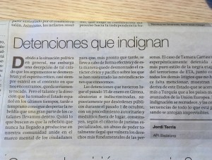 Como ocurrió con Tamara Carrasco, esperpénticamente detenida al más puro estilo de la negra etapa del terrorismo de ETA, junto con todos los demás litigios que no hace falta mencionar, la deriva de este Estado se acerca más a Turquia que a los países más avanzados de la Union Europea.